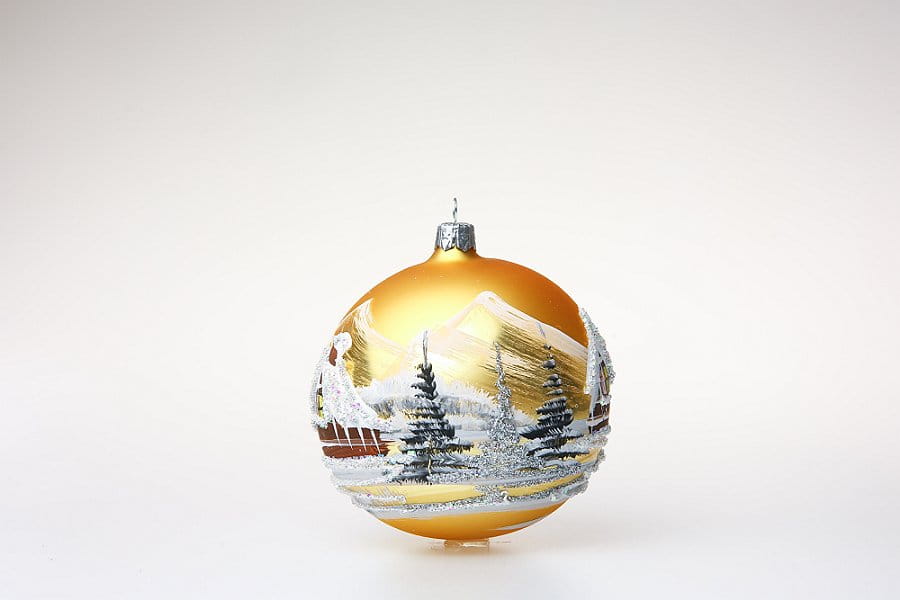 Bombka złota 10 cm z pejzażem - zimowy dom